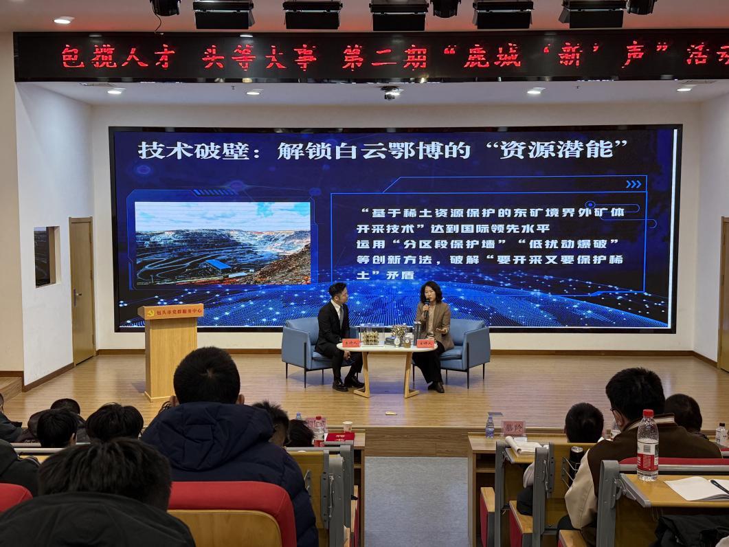 为深入贯彻落实“科技赋能新质生产力”发展要求,推动稀土资源综合利用与产业高质量升级,近日,由中共包头市委组织部(市委人才办)、包头市人力资源和社会保障局联合主办,昆都仑区人力资源和社会保障局精心承办的第二期“鹿城‘新’‘声’”主题活动在包头市党群服务中心成功举办。昆都仑区、青山区、九原区、稀土高新区包钢矿研院专技人才代表及内蒙古科技大学、包头钢铁职业技术学院师生代表齐聚现场,共同聆听行业专家分享科研成果与产业转化经验。