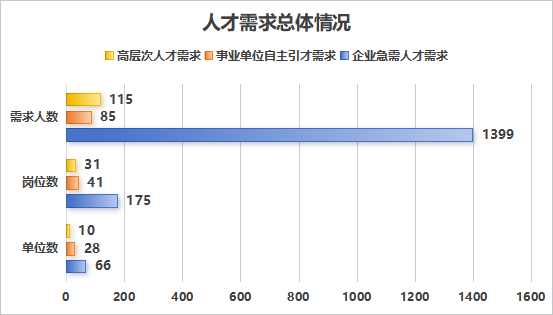 本次共征集到66家企业人才需求,175个岗位需求1399人,占本次引才总量的94.27%,是我市急需紧缺人才需求的绝对主体,人才学历要求兼顾层次与实用性,形成硕士、本科、专科的梯度化需求结构。