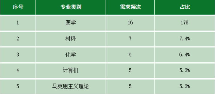 专业导向:高层次人才需求专业排名前五的依次为医学类、材料科学与工程类、化学与化工类、计算机与电子信息类、马克思主义理论类,需求占比分别达17%、7.4%、6.4%、5.3%、5.3%,整体需求结构既锚定产业发展“硬实力”提升,也兼顾民生保障与思想建设“软实力”培育,形成与城市战略定位、产业布局、民生需求高度适配的高层次人才引育体系。
