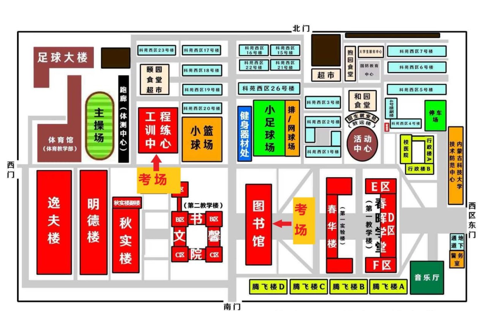 设内蒙古科技大学1个考点,请广大考生认真阅读准考证上考点地址信息,提前了解考点入口位置和前往路线,做好考试当天的出行安排。为避免交通拥堵,考试当天应提前1小时到达考点,倡导考生乘坐公交车,送考车辆禁止进入校区,停车落客后应及时驶离考点,严禁车辆在考点周围聚集。为确保道路畅通,考试当天交管部门将在各考点附近及道路沿线增派交警,请考生配合。