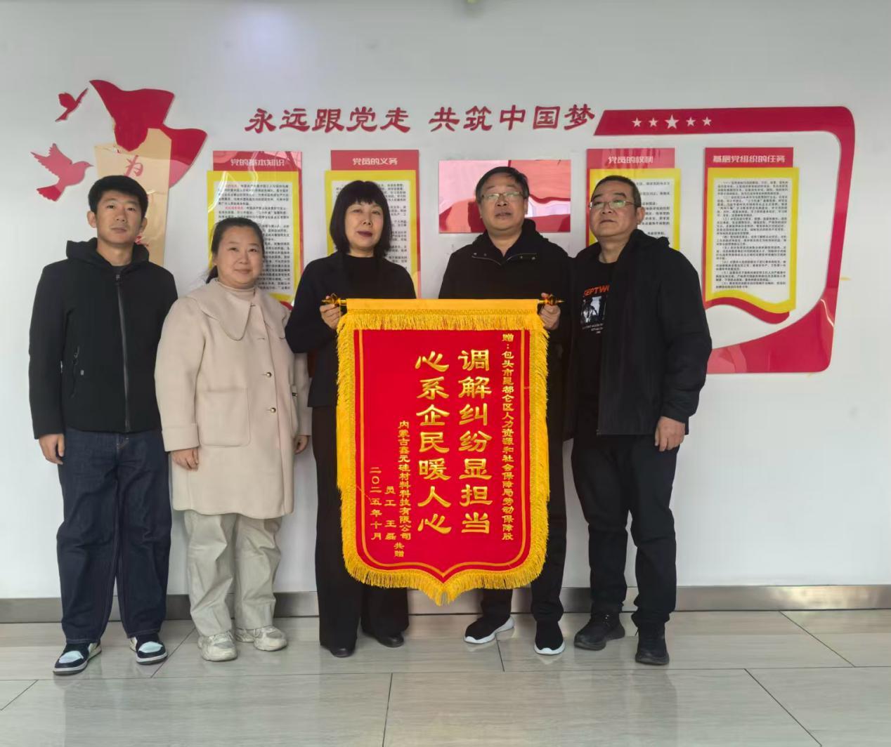 11月21日,某企业将一面写有“调解纠纷显担当 心系企民暖人心”的锦旗送到昆区人社局,以此感谢工作人员成功化解的一起错综复杂的工伤争议案件。今年以来,昆区人社局不断在工伤认定领域深耕拓展,将“我为群众办实事”理念融入日常服务,简化办事流程,提高办事效率,以高度的责任感和使命感,为构建区域和谐劳动关系积极贡献人社力量。
