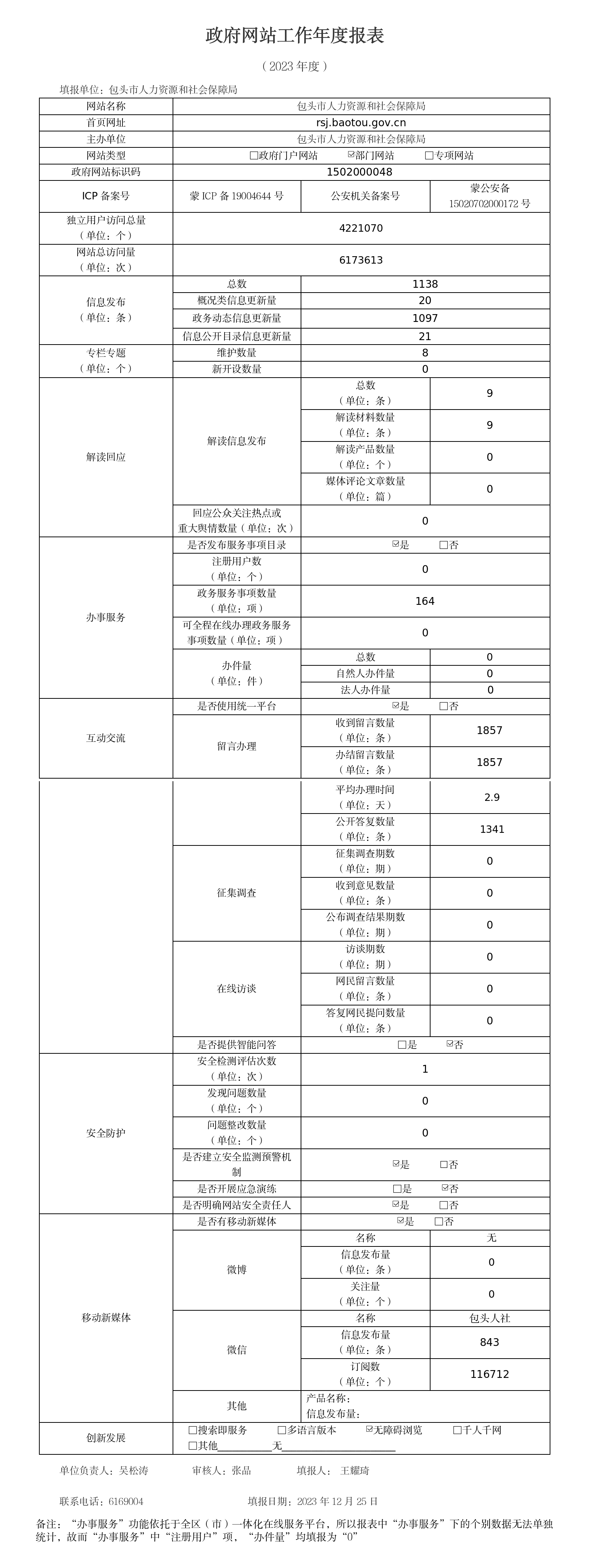 2023年包头市人力资源和社会保障局年度报表