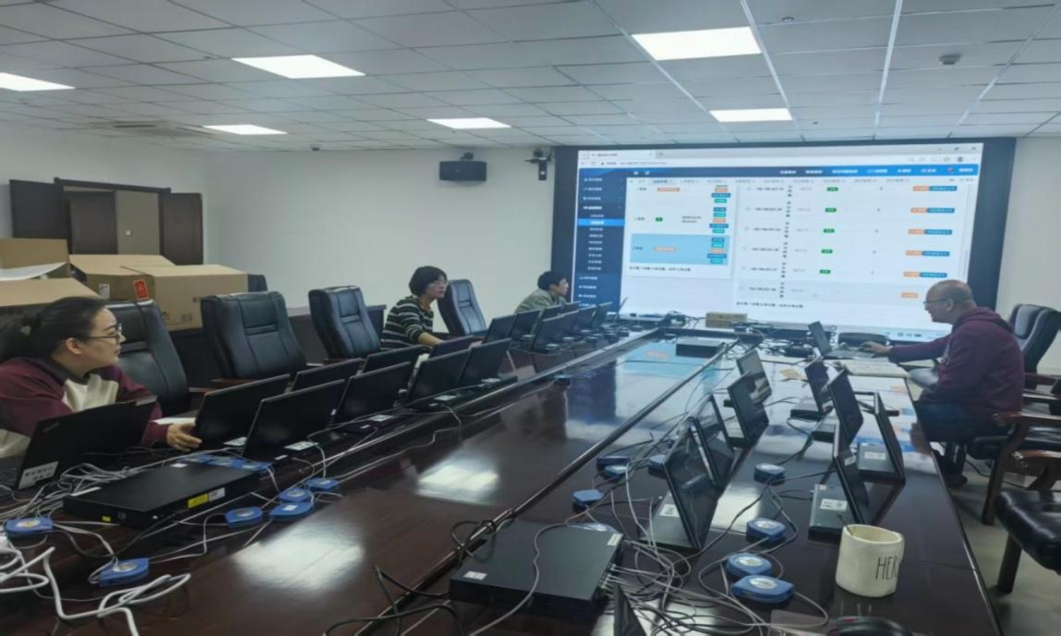 为确保无纸化面试评分系统平稳高效运行,切实把党建优势转化为业务工作实效,中心充分发挥党员先锋模范作用,抽选8名政治素质硬、业务能力强的技术骨干,组建“党员先锋技术攻坚小组”开展首轮集中培训。参训人员按两人一组,自本周起,围绕面试考场快速搭建、设备连接、系统制式设置、考中技术保障等关键环节,持续开展多轮次、全流程实战化演练,以精益求精的态度反复打磨操作技能,确保全员通过考核、熟练掌握操作要领,以党员带头学、带头练的实际行动,擦亮“红心智领 阳光护考”党建品牌底色。